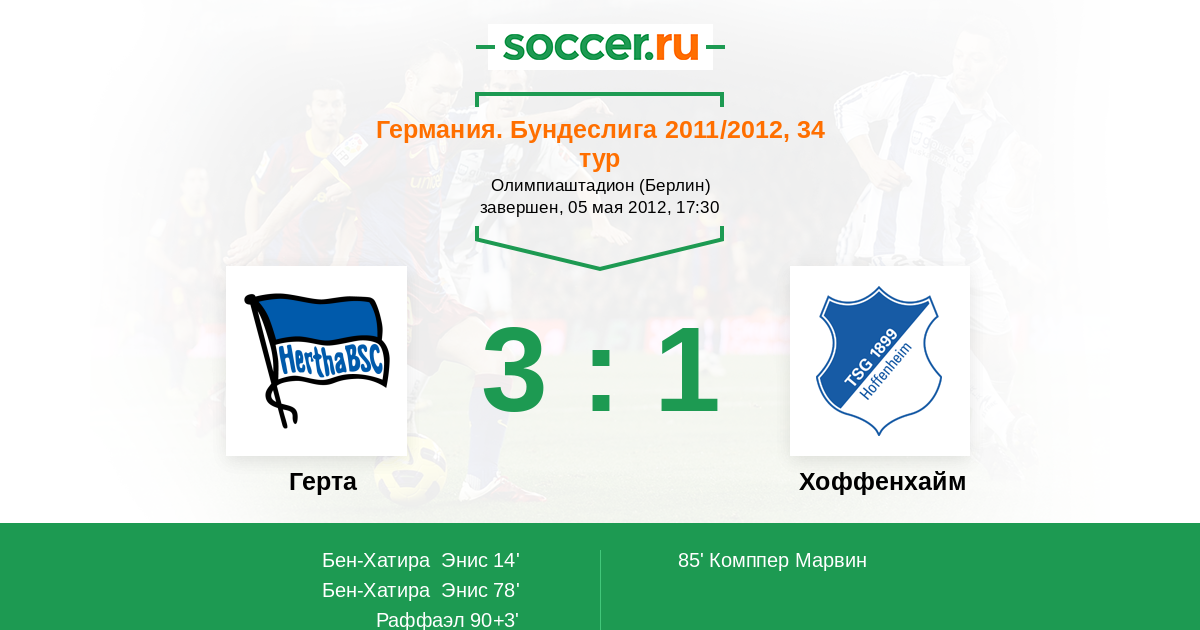 Протокол матча Герта против Хоффенхайм