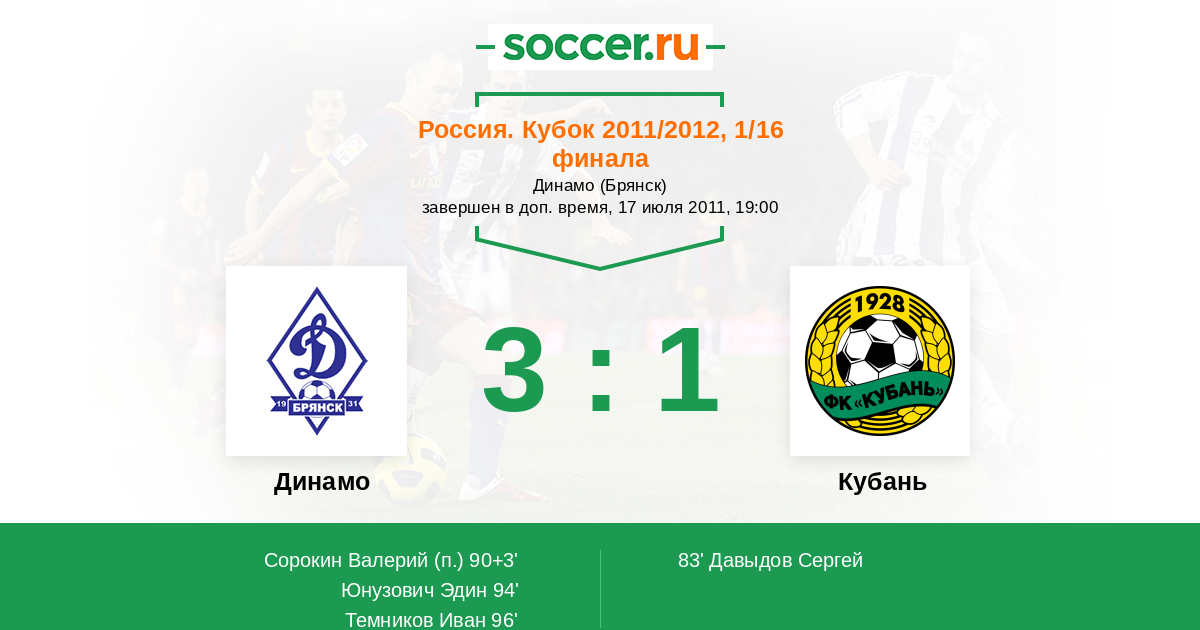 Протокол матча Динамо Брянск против Кубань