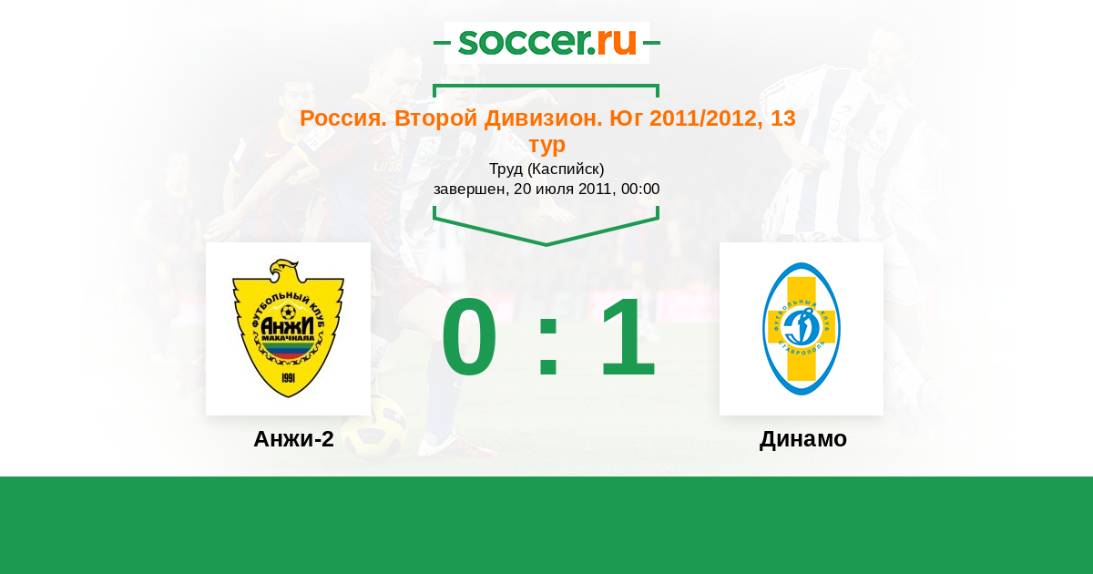 Россия. Вторая лига. Группа 1 16.07.2010 Дагдизель Логотип футбольный клуб Дагдизель (Махачкала) 1:0 Логотип футбольный клуб Динамо Ставрополь Динамо Ставрополь