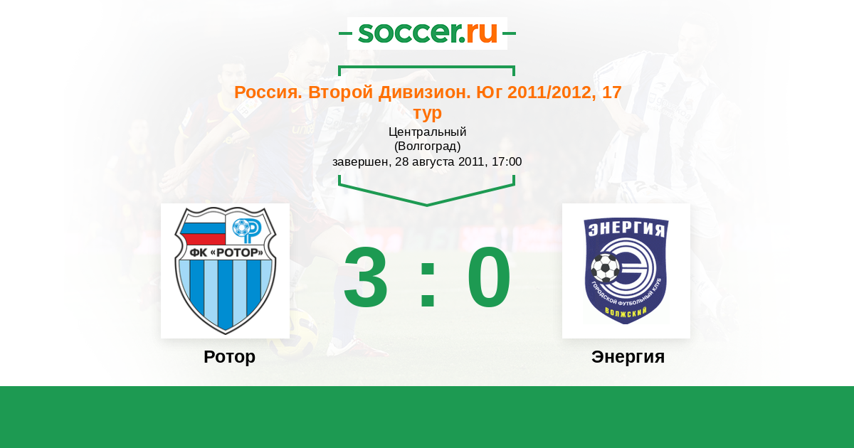 Россия. Вторая лига. Группа 1 25.05.2012 Энергия Логотип футбольный клуб Энергия (Волжский) 2:3 Логотип футбольный клуб Ротор (Волгоград) Ротор