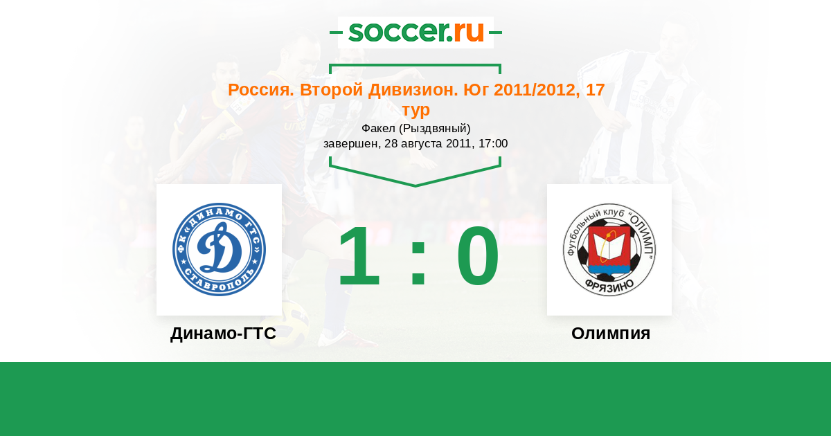 Россия. Вторая лига. Группа 1 16.10.2011 Олимпия Логотип футбольный клуб Олимпия (Геленджик) 1:0   Динамо Ставрополь