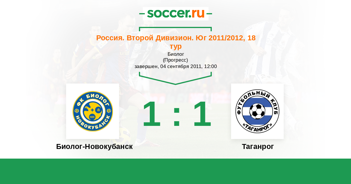 Россия. Вторая лига. Группа 1 26.04.2011 Таганрог Логотип футбольный клуб Таганрог 0:2 Логотип футбольный клуб Биолог-Новокубанск Биолог-Новокубанск