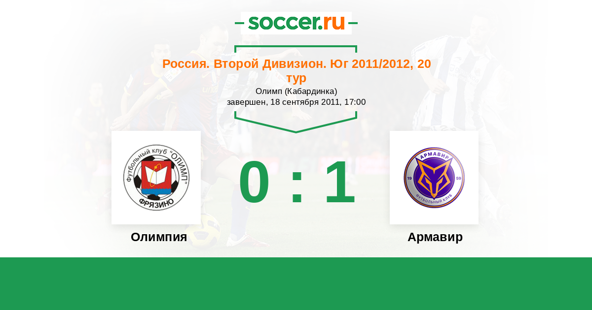 Россия. Вторая лига. Группа 1 30.10.2011 Ангушт   1:0 Логотип футбольный клуб Олимпия (Геленджик) Олимпия