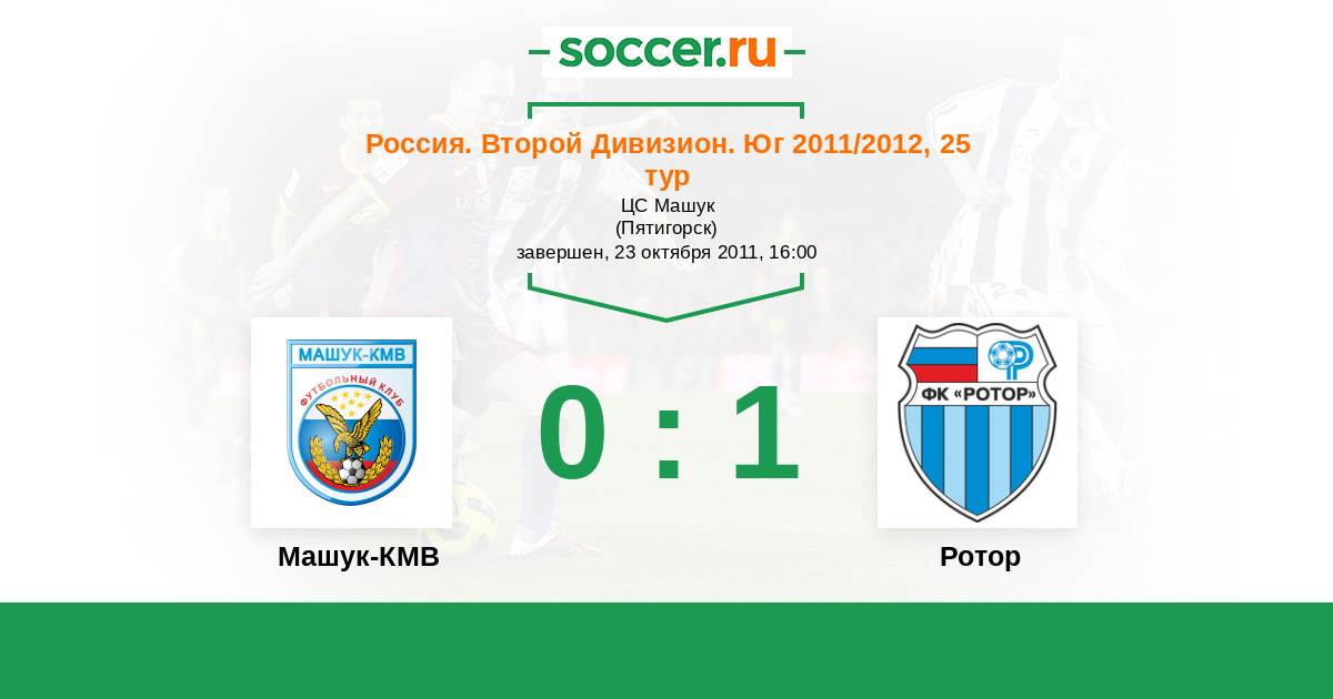 Россия. Вторая лига. Группа 1 07.10.2014 Машук-КМВ Логотип футбольный клуб Машук-КМВ (Пятигорск) 2:4 Логотип футбольный клуб Ротор (Волгоград) Ротор