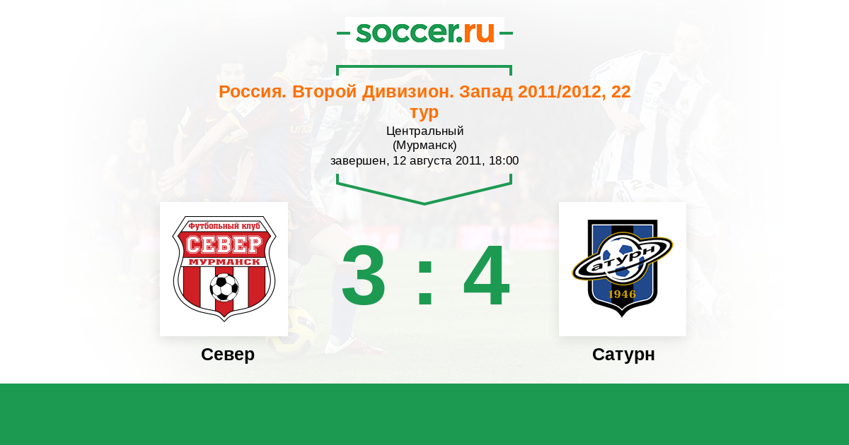 Россия. Вторая лига. Группа 2 26.10.2011 Сатурн Логотип футбольный клуб Сатурн (Раменское) 2:2 Логотип футбольный клуб Север (Мурманск) Север