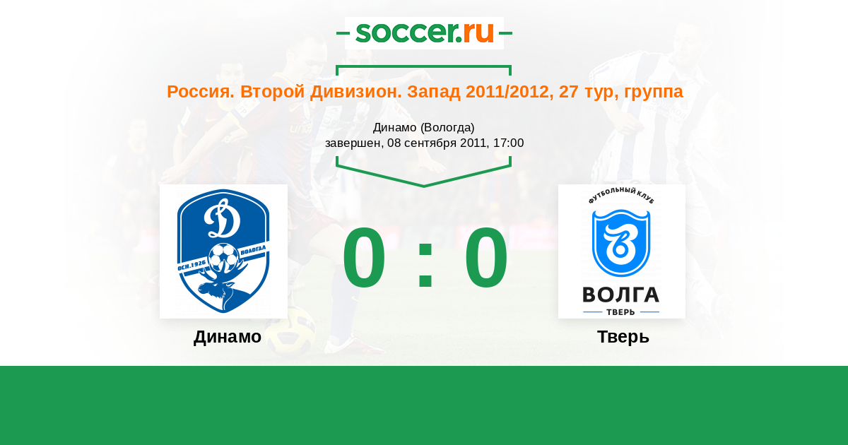 Россия. Вторая лига. Группа 2 14.06.2011 Тверь Логотип футбольный клуб Тверь 3:0 Логотип футбольный клуб Динамо Вологда Динамо Вологда
