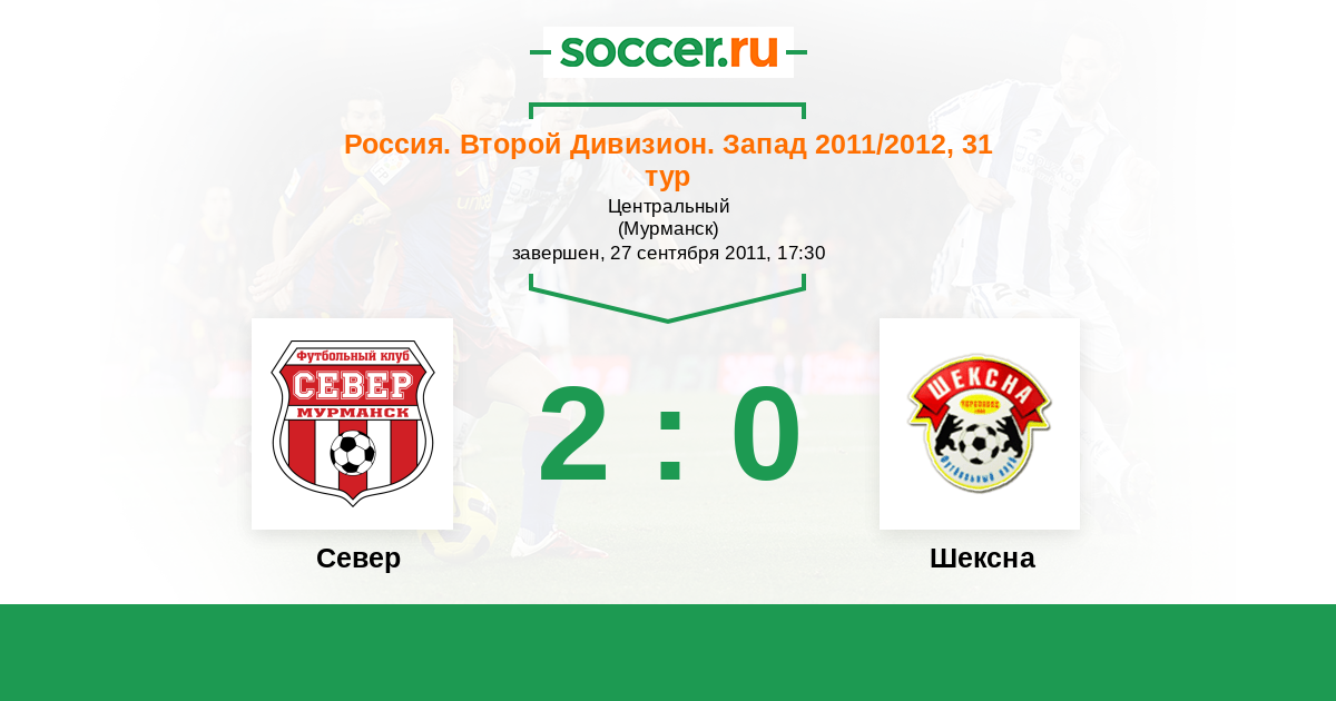Россия. Вторая лига. Группа 2 30.06.2011 Шексна Логотип футбольный клуб Шексна (Череповец) 0:1 Логотип футбольный клуб Север (Мурманск) Север