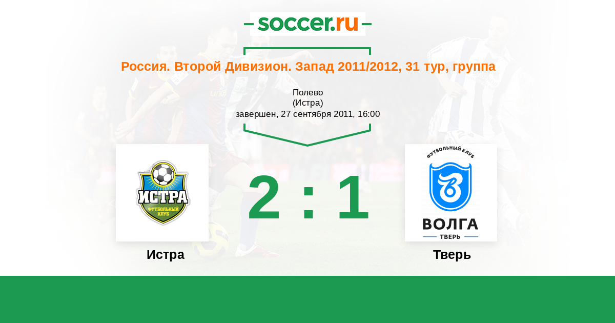 Россия. Вторая лига. Группа 2 01.06.2012 Тверь Логотип футбольный клуб Тверь 1:1 Логотип футбольный клуб Истра Истра