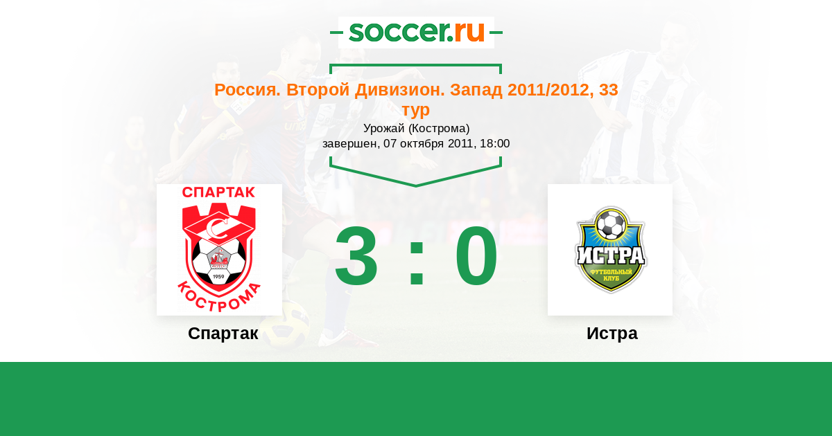 Россия. Вторая лига. Группа 2 11.07.2011 Истра Логотип футбольный клуб Истра 0:1 Логотип футбольный клуб Спартак Кострома Спартак Кострома