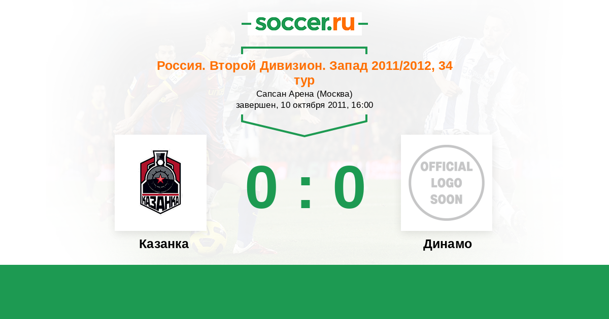 Россия. Вторая лига. Группа 2 10.05.2022 Динамо СПб Логотип футбольный клуб Динамо СПб (Санкт-Петербург) 1:1 Логотип футбольный клуб Казанка (Москва) Казанка