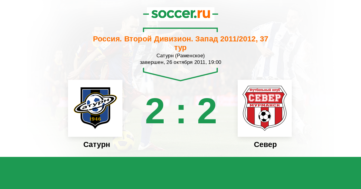 Россия. Вторая лига. Группа 2 12.08.2011 Север Логотип футбольный клуб Север (Мурманск) 3:4 Логотип футбольный клуб Сатурн (Раменское) Сатурн