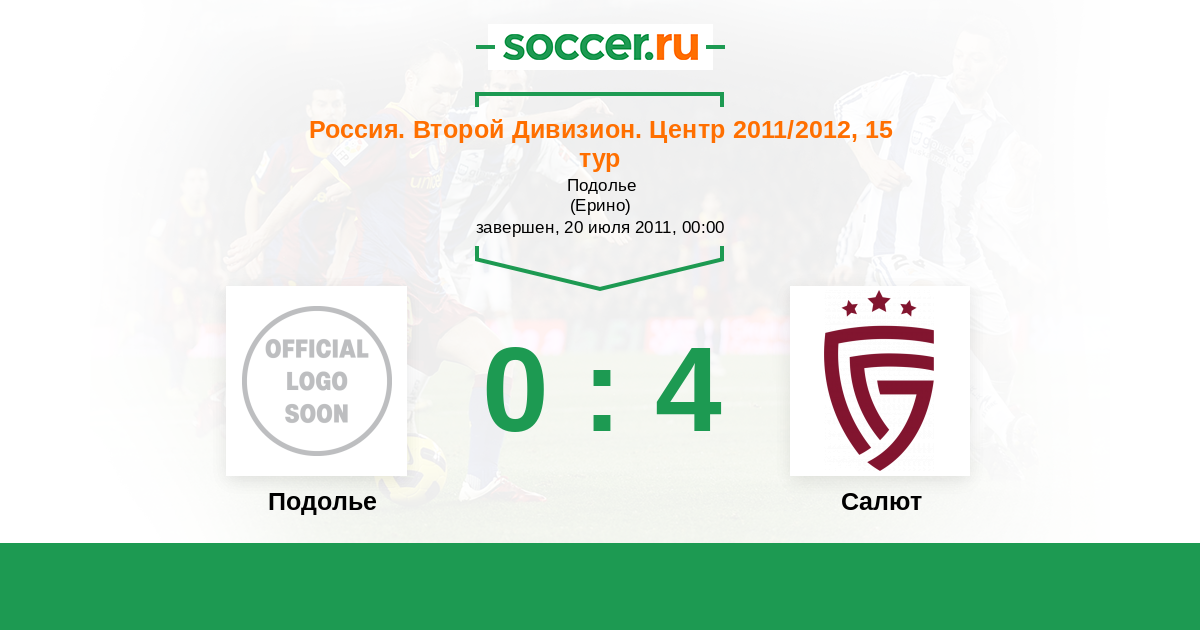 Россия. Вторая лига. Группа 3 23.10.2011 Салют Логотип футбольный клуб Салют (Белгород) 1:0 Логотип футбольный клуб Подолье (Подольский район) Подолье