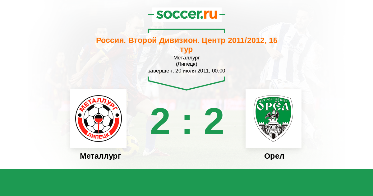 Россия. Вторая лига. Группа 3 27.08.2012 Металлург Логотип футбольный клуб Металлург (Липецк) 2:2 Логотип футбольный клуб Орел Орел