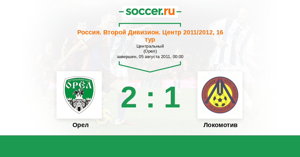 Россия. Вторая лига. Группа 3 21.07.2012 Орел Логотип футбольный клуб Орел 0:1 Логотип футбольный клуб Локомотив (Лиски) Локомотив