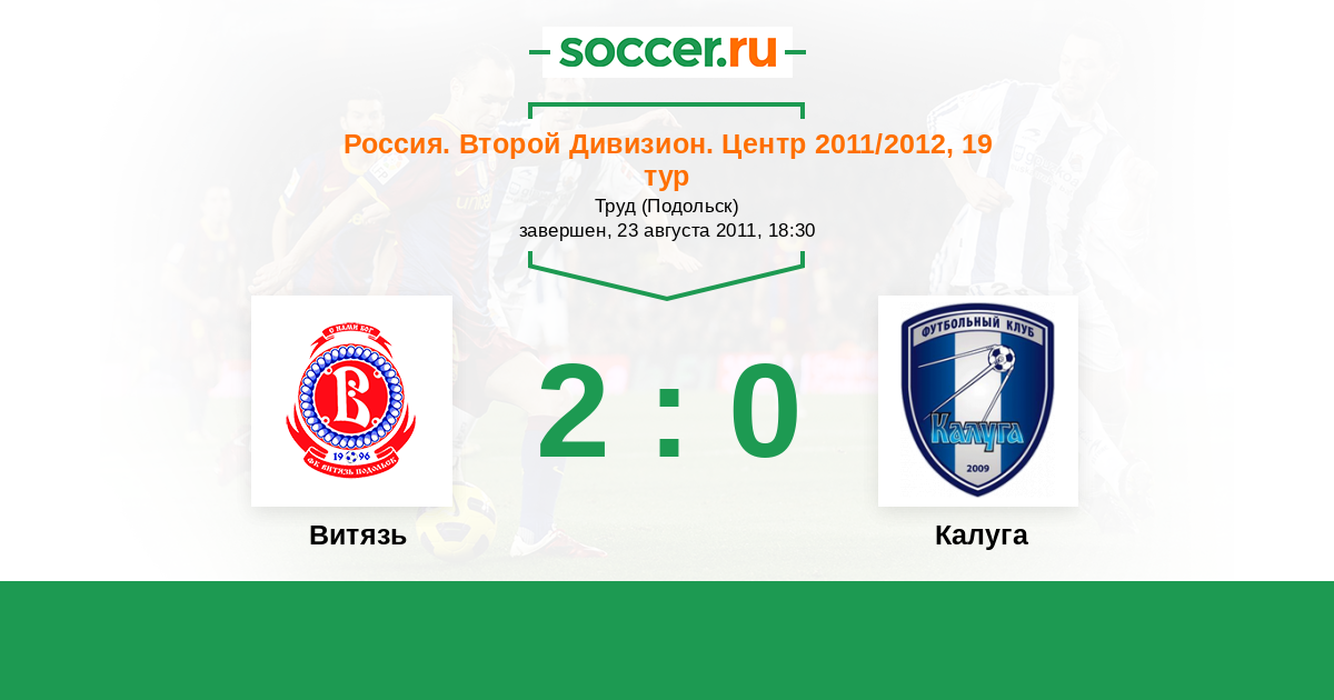 Россия. Вторая лига. Группа 3 29.04.2012 Калуга Логотип футбольный клуб Калуга 3:1 Логотип футбольный клуб Витязь (Подольск) Витязь