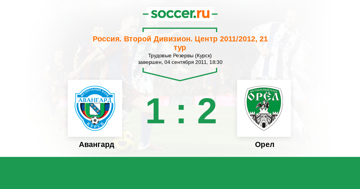 Россия. Вторая лига. Группа 3 11.05.2012 Орел Логотип футбольный клуб Орел 1:2 Логотип футбольный клуб Авангард (Курск) Авангард