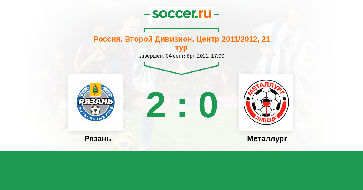 Россия. Вторая лига. Группа 3 11.06.2011 Металлург Логотип футбольный клуб Металлург (Липецк) 2:1 Логотип футбольный клуб Звезда Рз (Рязань) Звезда Рз