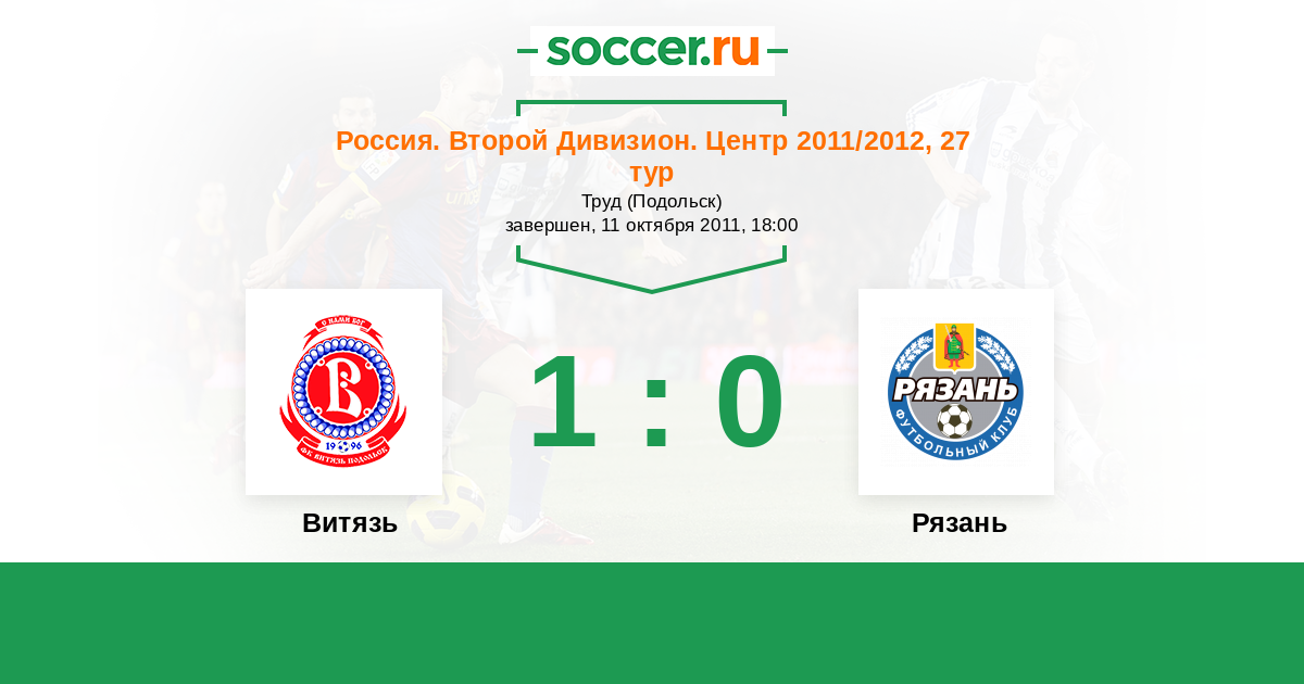 Россия. Вторая лига. Группа 3 05.10.2011 Звезда Рз Логотип футбольный клуб Звезда Рз (Рязань) 0:2 Логотип футбольный клуб Витязь (Подольск) Витязь