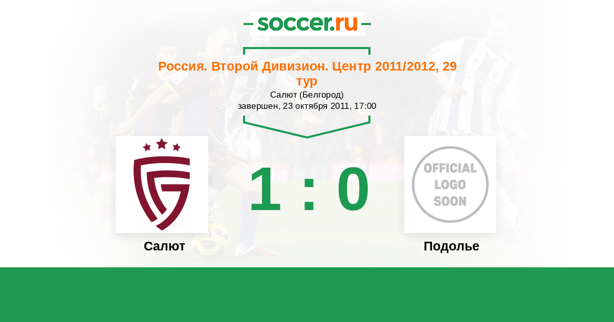 Россия. Вторая лига. Группа 3 20.07.2011 Подолье Логотип футбольный клуб Подолье (Подольский район) 0:4 Логотип футбольный клуб Салют (Белгород) Салют