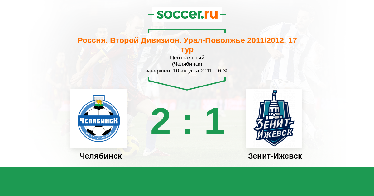 Россия. Вторая лига. Группа 4 18.05.2011 Зенит-Ижевск Логотип футбольный клуб Зенит-Ижевск 1:2 Логотип футбольный клуб Челябинск Челябинск