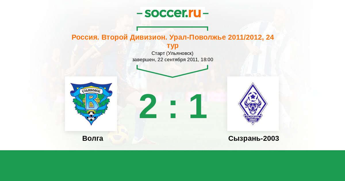 Россия. Вторая лига. Группа 4 30.06.2011 Сызрань-2003 Логотип футбольный клуб Сызрань-2003 1:3 Логотип футбольный клуб Волга (Ульяновск) Волга