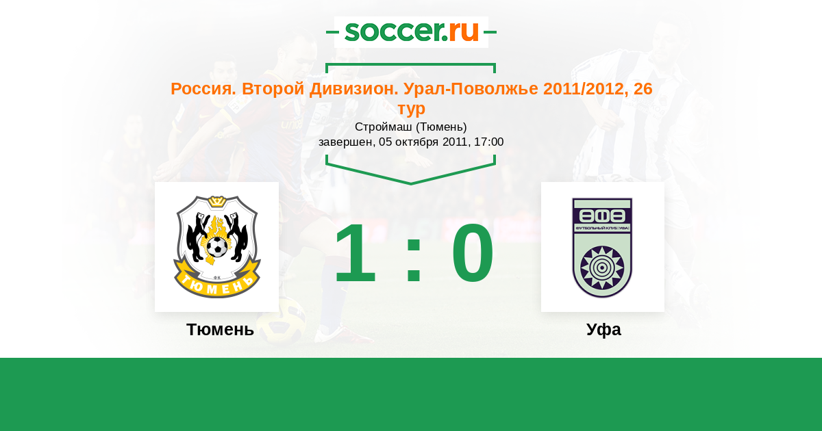 Россия. Вторая лига. Группа 4 11.10.2011 Уфа Логотип футбольный клуб Уфа 1:1 Логотип футбольный клуб Тюмень Тюмень