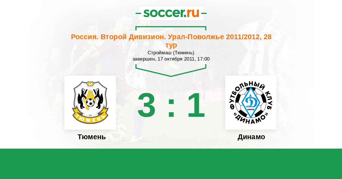 Россия. Вторая лига. Группа 4 13.07.2011 Динамо Киров Логотип футбольный клуб Динамо Киров 0:3 Логотип футбольный клуб Тюмень Тюмень