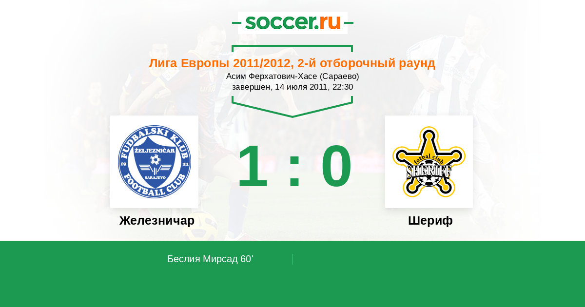 Протокол матча Железничар против Шериф