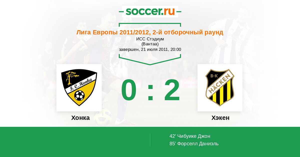 Протокол матча Хонка против Хэкен