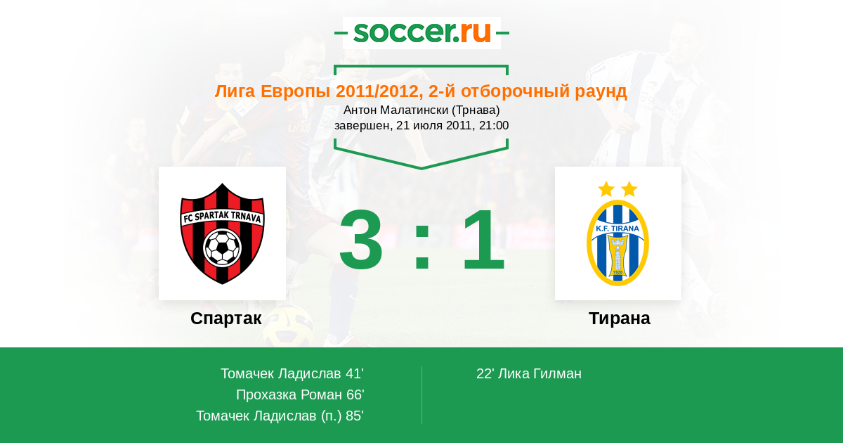 Протокол матча Спартак против Тирана