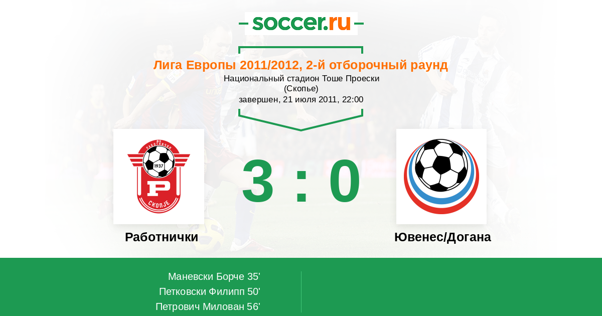 Протокол матча Работнички против Ювенес/Догана
