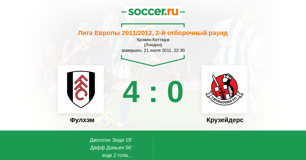 Протокол матча Фулхэм против Крузейдерс