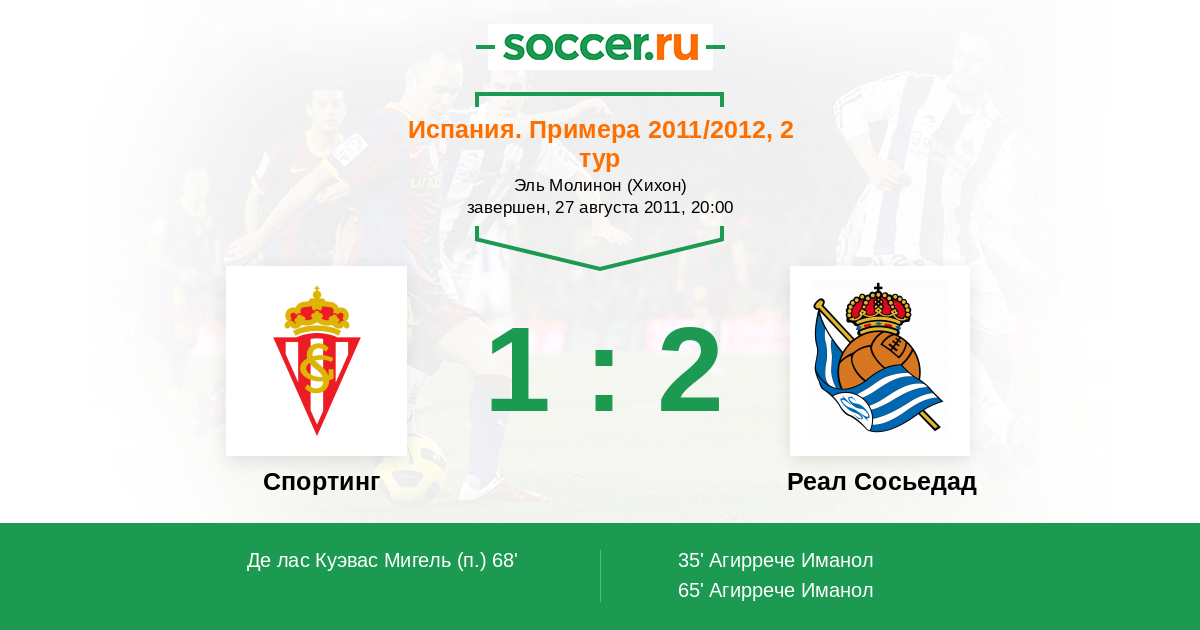 65' (0:2) Агиррече Иманол (9) (Прието Хаби (10))