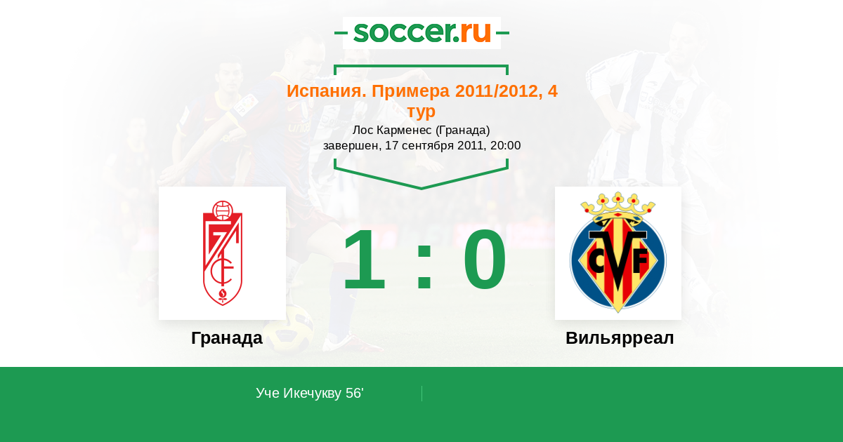 Протокол матча Гранада против Вильярреал