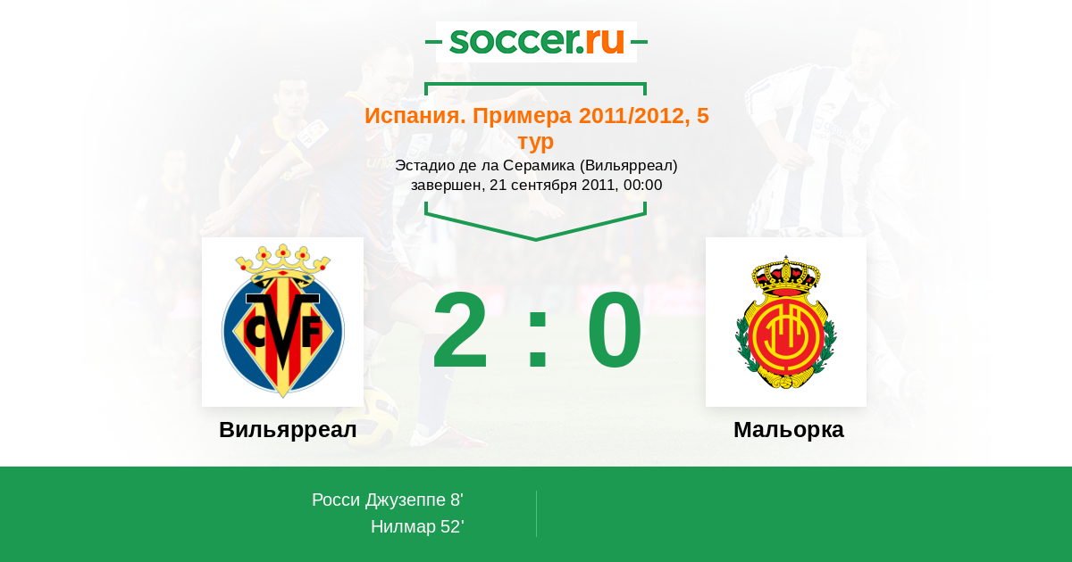 Протокол матча Вильярреал против Мальорка
