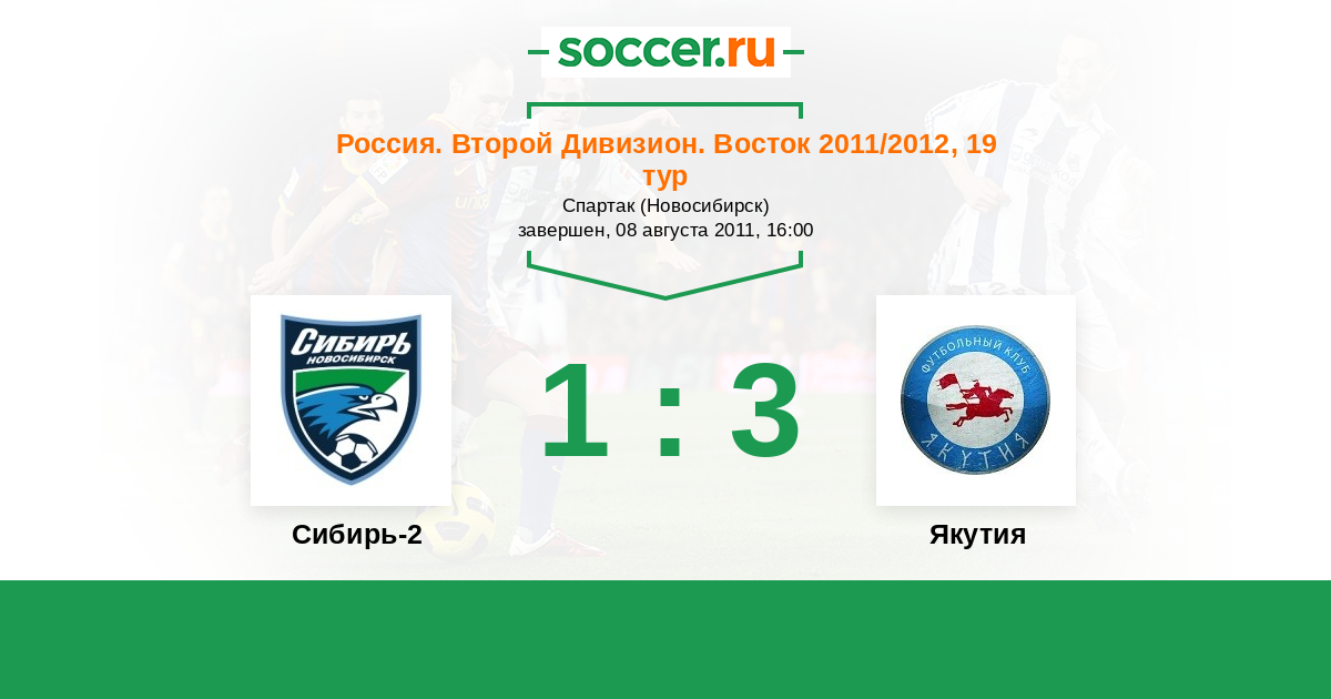 Россия. 2-й дивизион. Восток 05.06.2011 Якутия Логотип футбольный клуб Якутия (Якутск) 3:2 Логотип футбольный клуб Сибирь-2 (Новосибирск) Сибирь-2