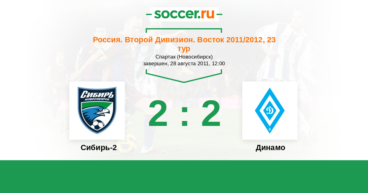 Россия. 2-й дивизион. Восток 11.10.2012 Сибирь-2 Логотип футбольный клуб Сибирь-2 (Новосибирск) 2:0 Логотип футбольный клуб Динамо Барнаул Динамо Барнаул