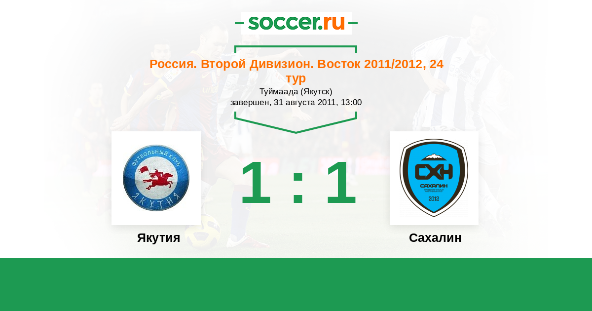 Россия. 2-й дивизион. Восток 18.05.2011 Сахалин Логотип футбольный клуб Сахалин (Южно-Сахалинск) 1:0 Логотип футбольный клуб Якутия (Якутск) Якутия