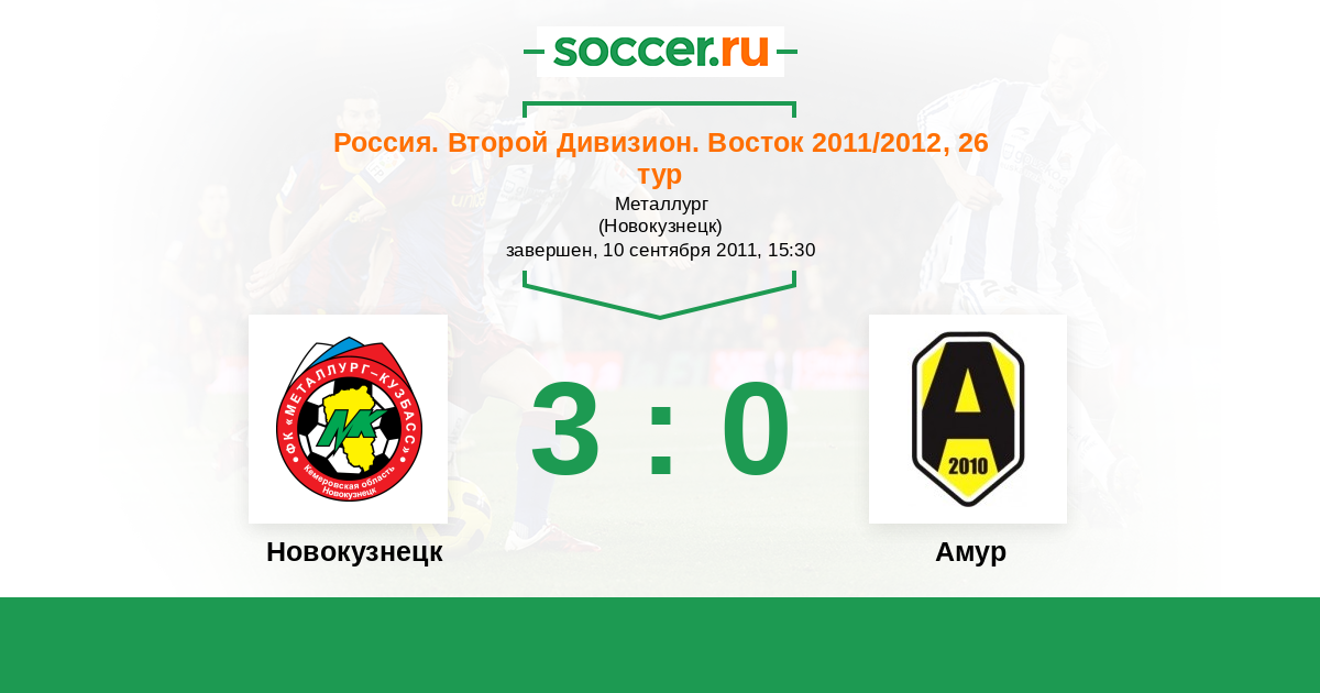 Россия. 2-й дивизион. Восток 11.10.2011 Амур Логотип футбольный клуб Амур  (Благовещенск) 0:0 Логотип футбольный клуб Металлург-Кузбасс (Новокузнецк) Металлург-Кузбасс