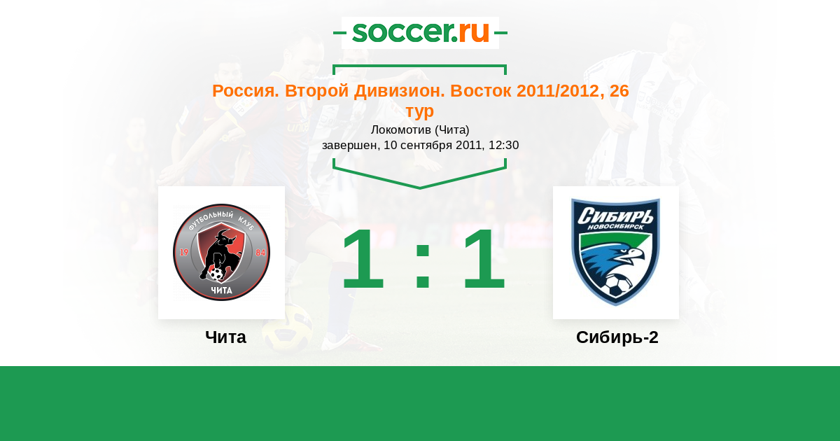 Россия. 2-й дивизион. Восток 11.10.2011 Сибирь-2 Логотип футбольный клуб Сибирь-2 (Новосибирск) 1:1 Логотип футбольный клуб Чита Чита