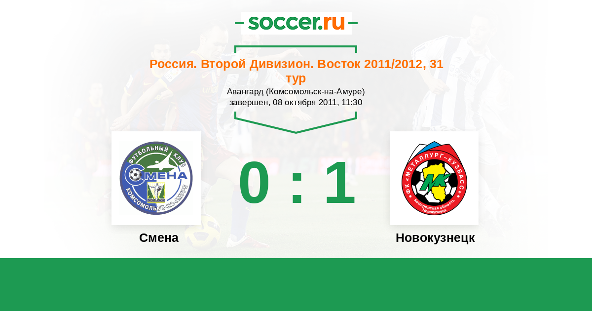 Россия. 2-й дивизион. Восток 04.05.2011 Смена Логотип футбольный клуб Смена (Комсомольск-на-Амуре) 1:2 Логотип футбольный клуб Металлург-Кузбасс (Новокузнецк) Металлург-Кузбасс