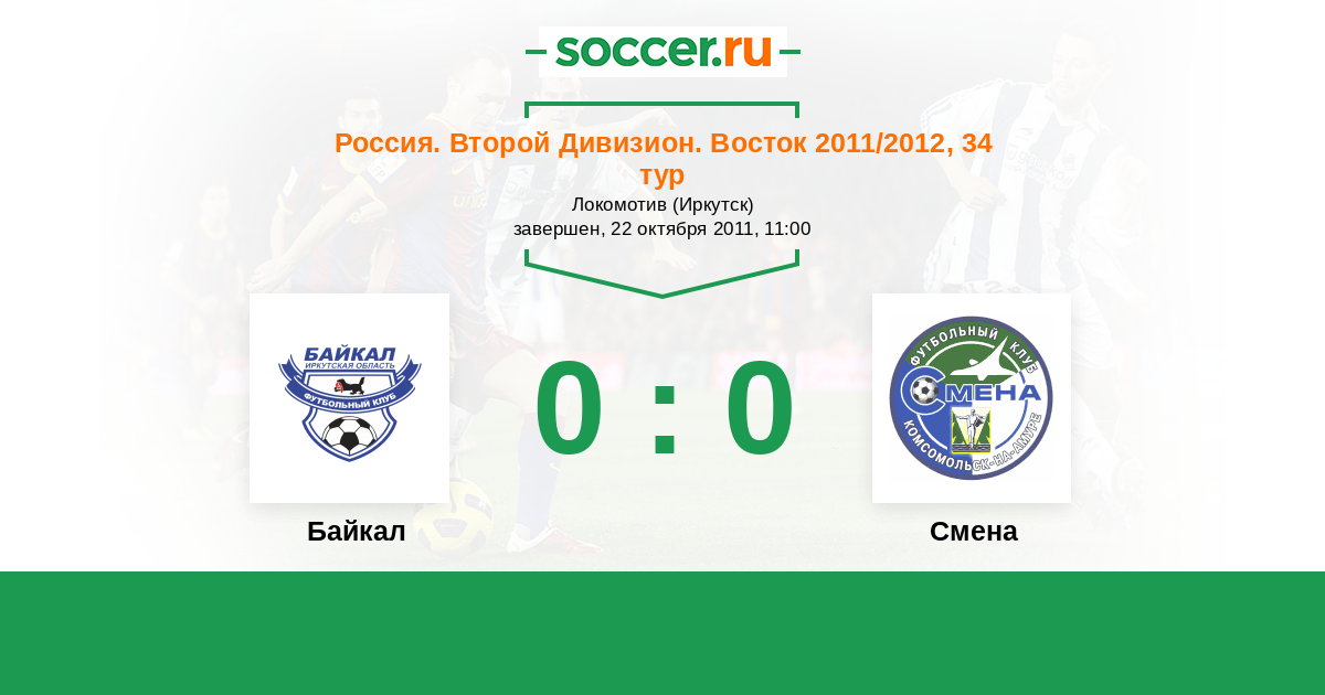 Россия. 2-й дивизион. Восток 18.05.2011 Байкал Логотип футбольный клуб Байкал (Иркутск) 0:0 Логотип футбольный клуб Смена (Комсомольск-на-Амуре) Смена