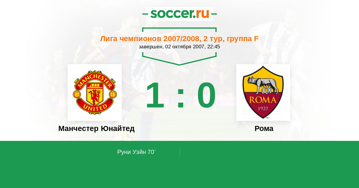 Протокол матча Манчестер Юнайтед против Рома