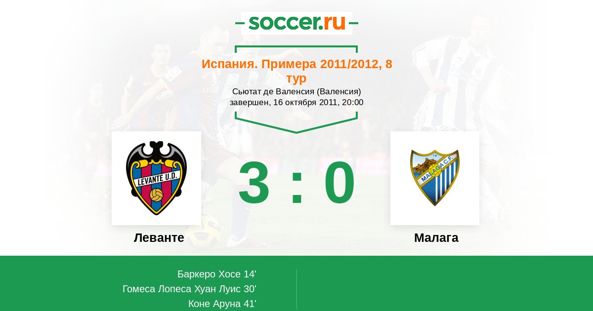 Протокол матча Леванте против Малага