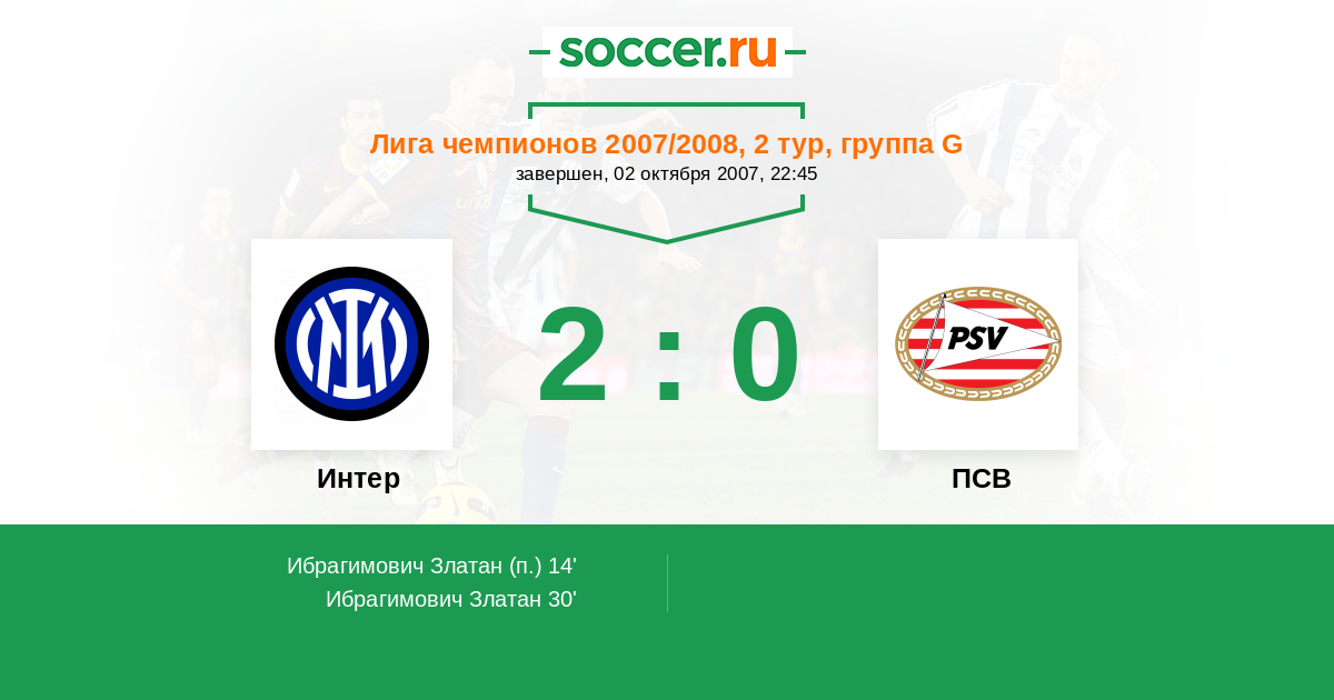 Протокол матча Интер против ПСВ