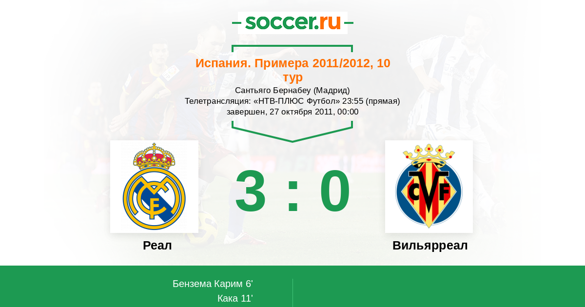 Протокол матча Реал против Вильярреал