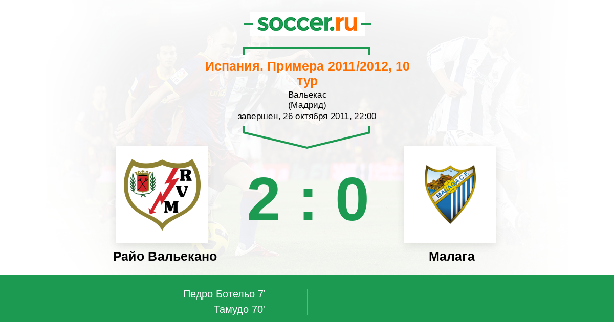 Протокол матча Райо Вальекано против Малага