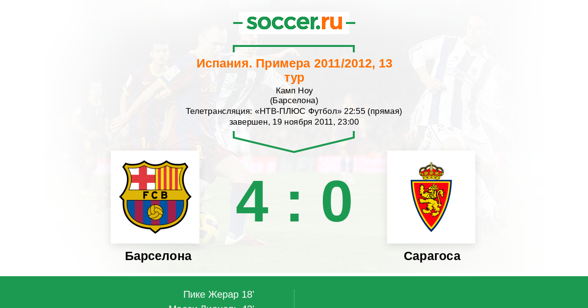 Протокол матча Барселона против Сарагоса