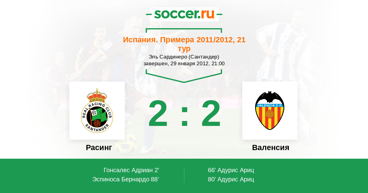 Протокол матча Расинг против Валенсия