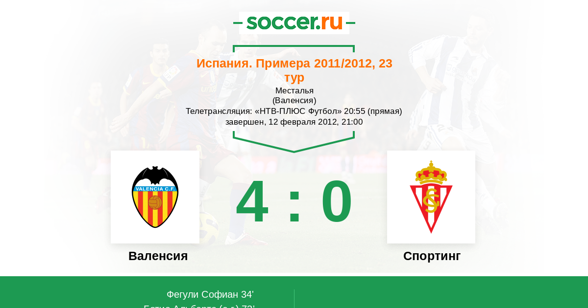 Протокол матча Валенсия против Спортинг